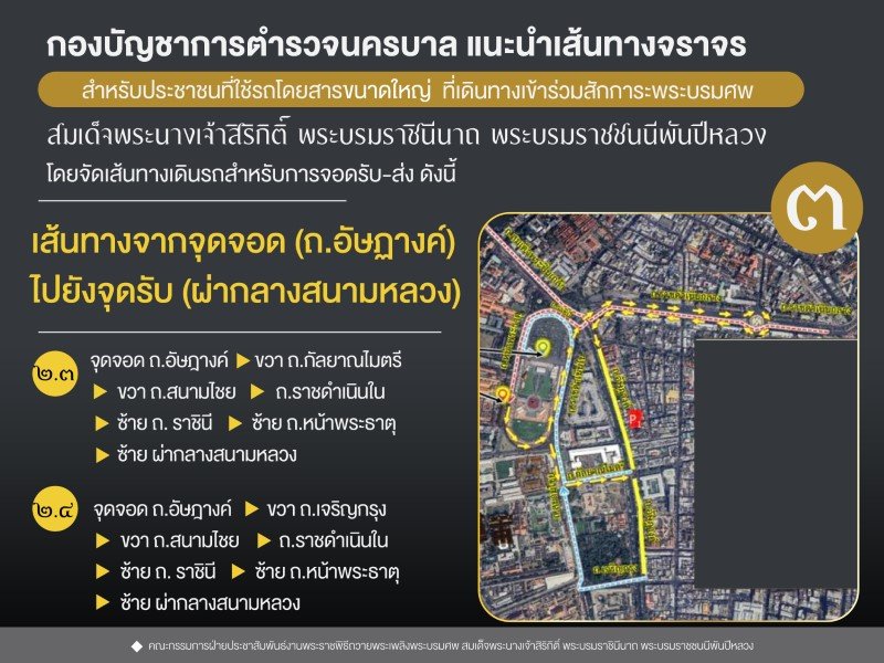 แนะนำเส้นทางจราจร สำหรับประชาชนที่ใช้รถโดยสารขนาดใหญ่ ที่เดินทางเข้าร่วมสักการะพระบรมศพ สมเด็จพระนางเจ้าสิริกิติ์ พระบรมราชินีนาถ พระบรมราชชนนีพันปีหลวง