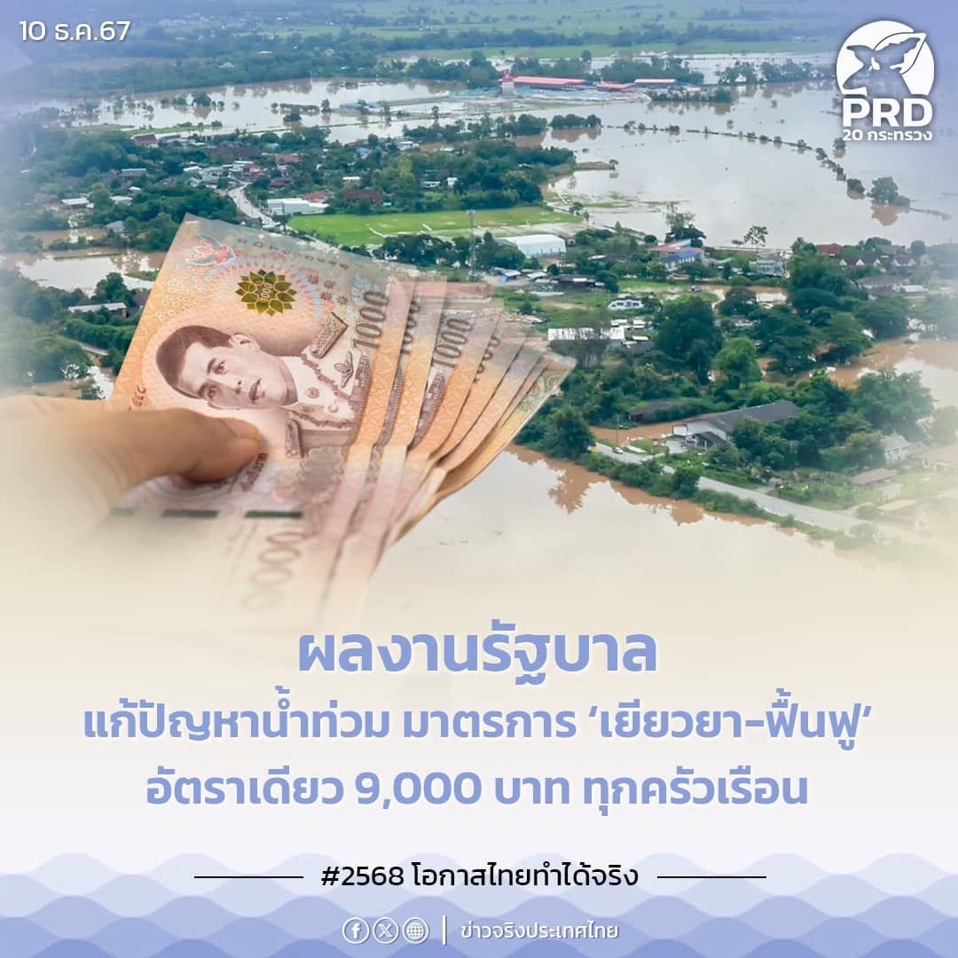 ผลงานรัฐบาล แก้ปัญหาน้ำท่วมมาตรการ “เยียวยา – ฟื้นฟู” อัตราเดียวกัน 9,000 บาท ทุกครัวเรือน