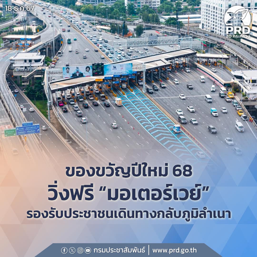 ครม. มอบของขวัญปีใหม่ 68 วิ่งฟรี “มอเตอร์เวย์” รองรับประชาชนเดินทางกลับภูมิลำเนา