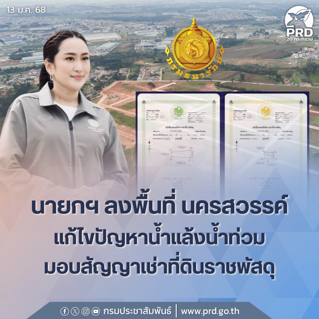 นายกรัฐมนตรี จะเป็นประธานในพิธีมอบสัญญาเช่าที่ราชพัสดุของกรมธนารักษ์ในโครงการ “ธนารักษ์เอื้อราษฎร์ สัญญาเช่าที่ดิน พลิกชีวิตประชาชน” ในปีงบประมาณ พ.ศ. 2568 ที่อาคารอเนกประสงค์