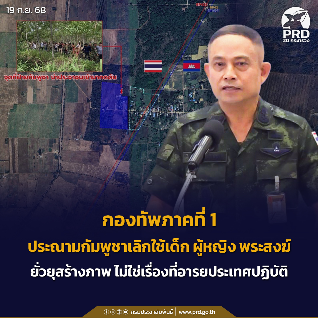 กองทัพภาคที่ 1 ประณามกัมพูชาเลิกใช้เด็ก ผู้หญิง พระสงฆ์ ยั่วยุสร้างภาพ ไม่ใช่เรื่องที่อารยประเทศปฏิบัติ