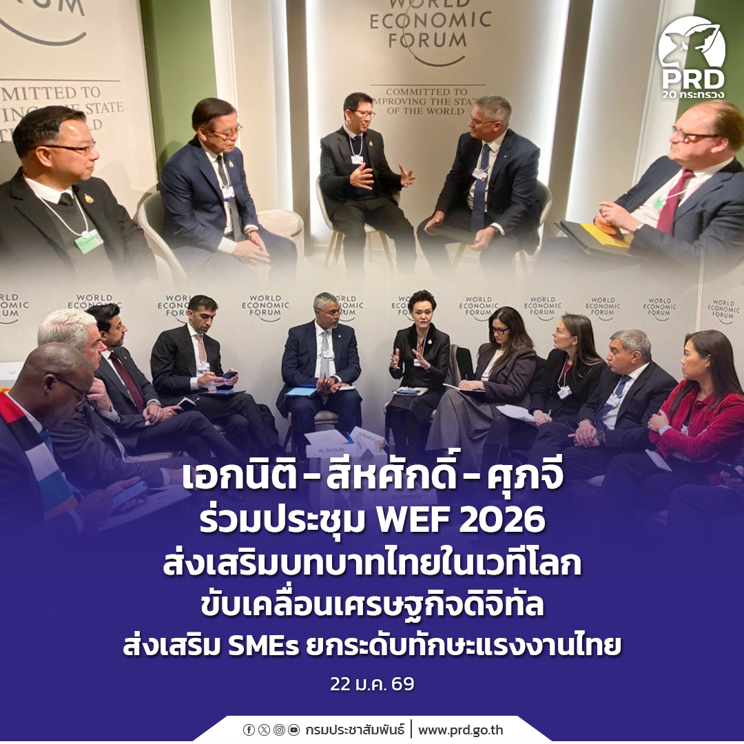เอกนิติ - สีหศักดิ์ - ศุภจี ร่วมประชุม WEF 2026 ส่งเสริมบทบาทไทยในเวทีโลก ขับเคลื่อนเศรษฐกิจดิจิทัล ส่งเสริม SMEs ยกระดับทักษะแรงงานไทย