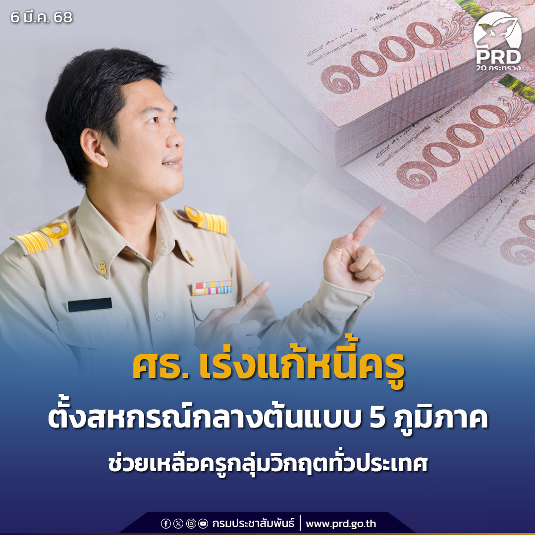 ศธ. เร่งแก้ปัญหาหนี้สินครูวางแนวทางตั้งสหกรณ์กลางต้นแบบ 5 ภูมิภาค ช่วยเหลือครูกลุ่มวิกฤตทั่วประเทศ