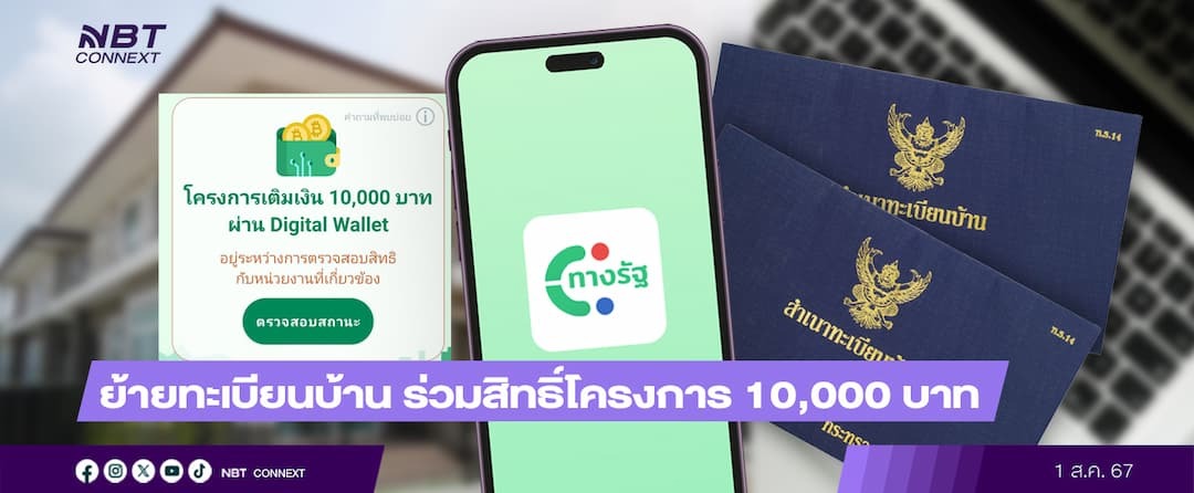 กรมการปกครอง ยืนยัน ประชาชนสามารถย้ายทะเบียนราษฎรเพื่อร่วมสิทธิ์เข้าโครงการเติมเงิน 10,000 บาท ผ่านดิจิทัลวอลเลต ได้ตามกฎหมาย ซึ่งจะส่งผลดีต่อภาครัฐในการย้ายตรงตัว