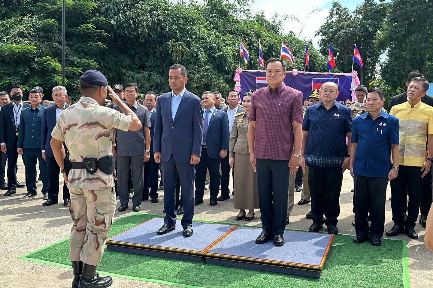 นายอนุทิน ชาญวีรกุล รองนายกรัฐมนตรีและรัฐมนตรีว่าการกระทรวงมหาดไทย ลงพื้นที่ตรวจเยี่ยมจังหวัดจันทบุรี เพื่อติดตามความคืบหน้าการก่อสร้าง สะพานมิตรภาพจันทบุรี-ไพลิน บริเวณสะพานข้ามคลองตะเคียน (จุดผ่านแดนถาวรบ้านผักกาด) ตำบลคลองใหญ่ อำเภอโป่งน้ำร้อน จังหวัดจันทบุรี โดยมีนายมนต์สิทธิ์ ไพศาลธนวัฒน์ ผู้ว่าราชการจังหวัดจันทบุรี พร้อมด้วยหัวหน้าส่วนราชการในสังกัด กระทรวงมหาดไทยร่วมให้การต้อนรับ