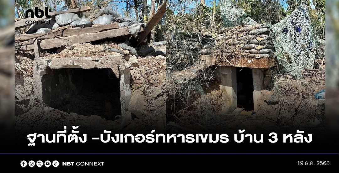 ฐานที่ตั้ง -บังเกอร์ทหารเขมร ทั้ง ปูน ทั้งกระสอบทราย สะท้อนการรับศึกมานาน
